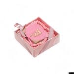 8x8x3 cm Zühre Serisi Asetat Kutu + Mikro Boy Arapça Tek Sayfa Püsküllü Kadife Kuran-ı Kerim + Gül Kokulu Tesbih Seti