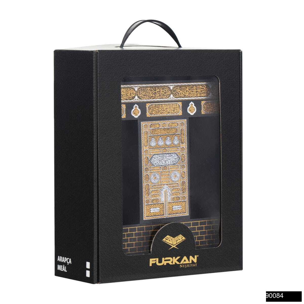 Kabe Serisi Orta Boy Flok Kaplamalı Ahşap Muhafazalı Kutu + Orta Boy Sıvama Kapak Kabe Arapça Kuran-ı Kerim + Taşıma Çantası Hediye Seti