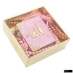 Lalezar Mikro Boy Kadife Kuran + 8×8 Gold Asetat Karton Kutu + Cam İnci Tesbih Hediye Seti