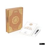 Set içerisinde yer alan Rahle Boy (20×28 cm) Arapça Termo Deri Gölgeli Kur’ân-ı Kerim, bilgisayar hattı ile basılmış olup; iri ve net yazı karakterleriyle kolay bir okuma sağlar. Gölgeli yazı stili, Kur’ân-ı Kerimi yazmak isteyenler için de rehberlik eder. Varak baskılı termo deri kapak ise uzun ömürlü bir kullanım sunar. Ayrıca, QR kod özelliği sayesinde Kur’ân-ı Kerim’i sesli olarak da takip edebilirsiniz.