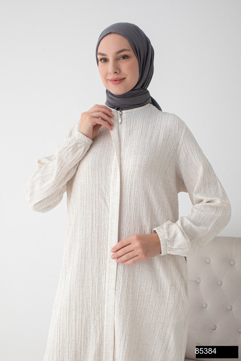 Modamiss Bürümcük Kumaş Bayan Hac ve Umre Elbisesi (2 parça) – Krem