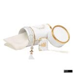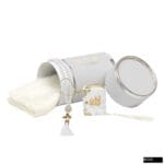 Taç Silindir Kutu + Mikro Kadife Püsküllü Kuran + Namaz Başörtüsü + Cam İnci Tesbih Seti